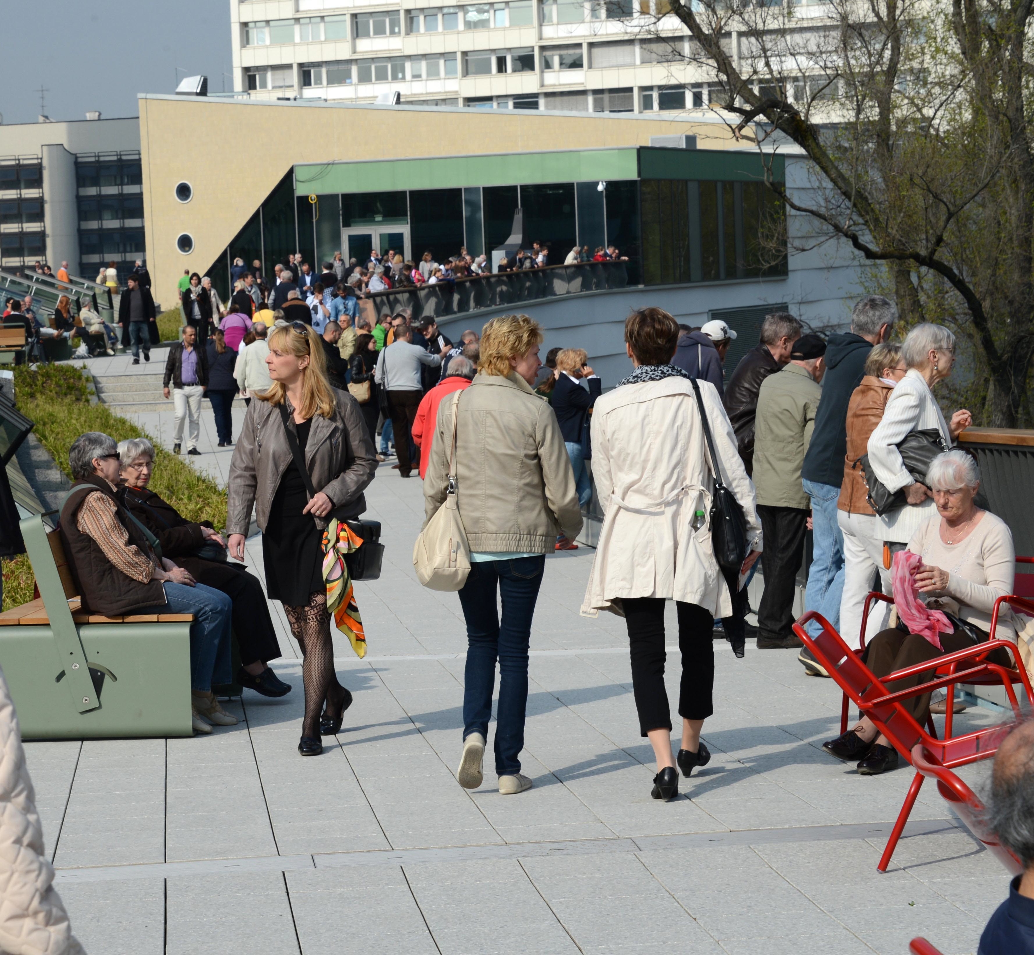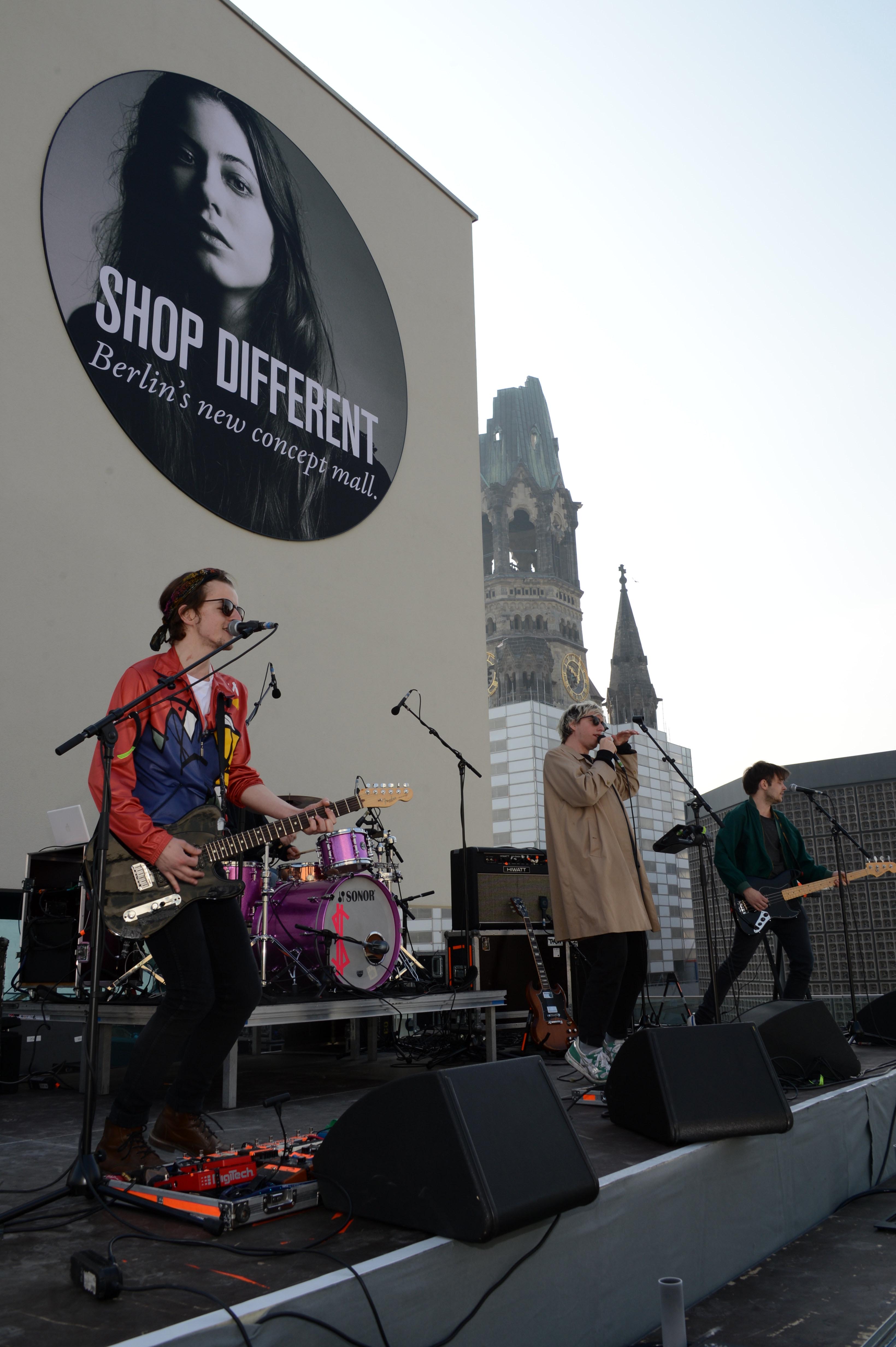 Die Band Bilderbuch begeisterte die Besucher mit einem fulminanten Überraschungskonzert auf der Dachterrasse der neuen Shopping-Destination gegenüber der Gedächtniskirche. Ole Tillman moderierte die offizielle Eröffnungszeremonie.